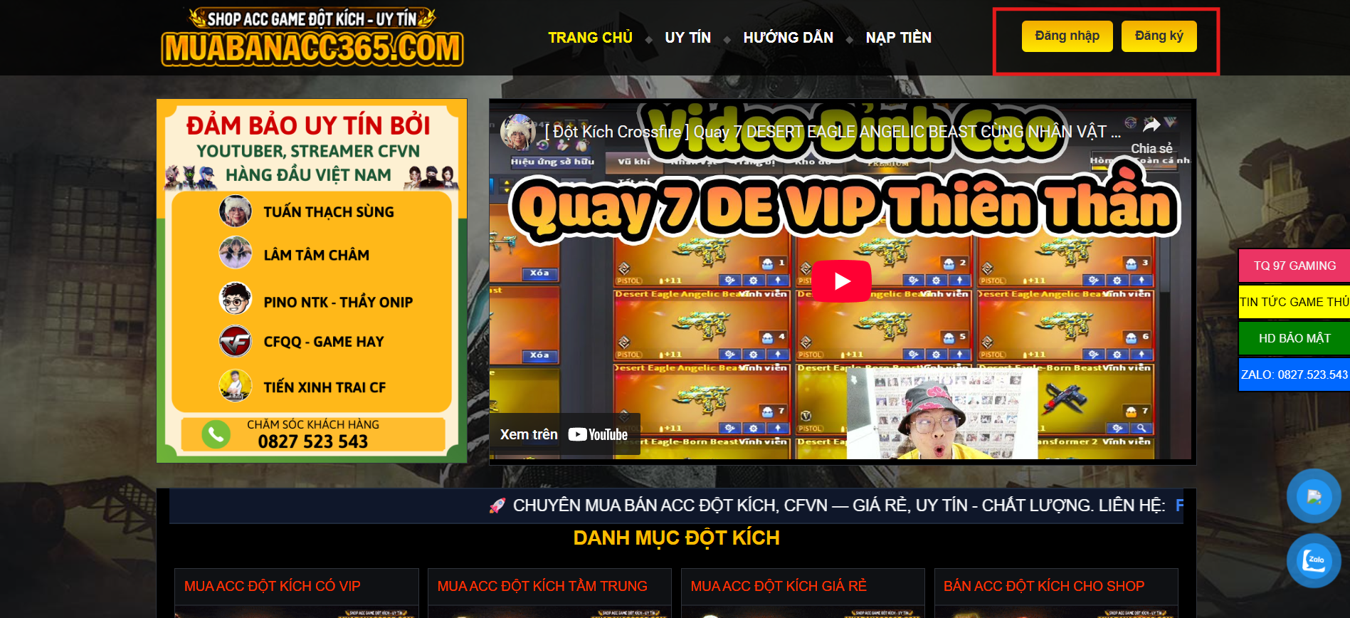 - Sau khi đã chọn được Acc cần mua, các bạn Click " Đăng nhập " ở góc phải trên cùng